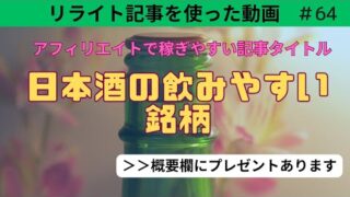 アフィリエイトについて アフィリエイトで稼ぎやすい「日本酒の飲みやすい銘柄」のリライト記事動画★記事のプレゼントもあります★
